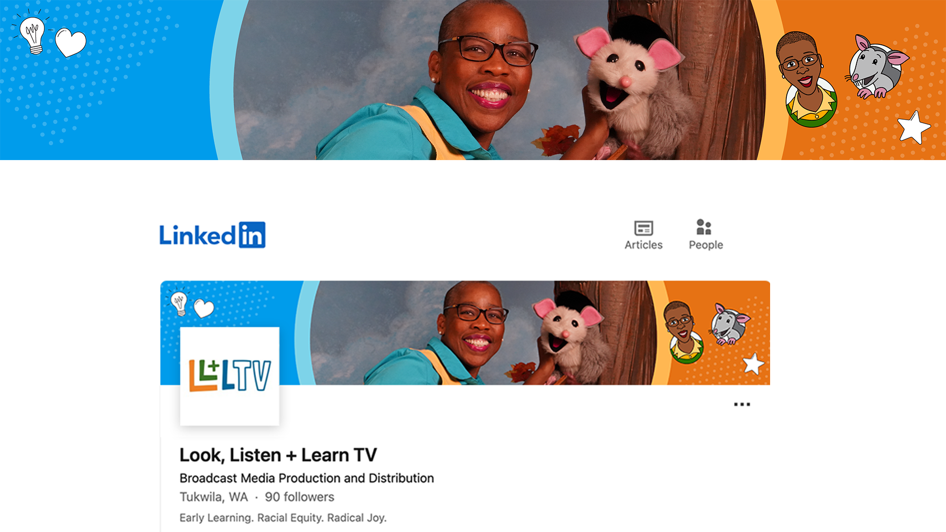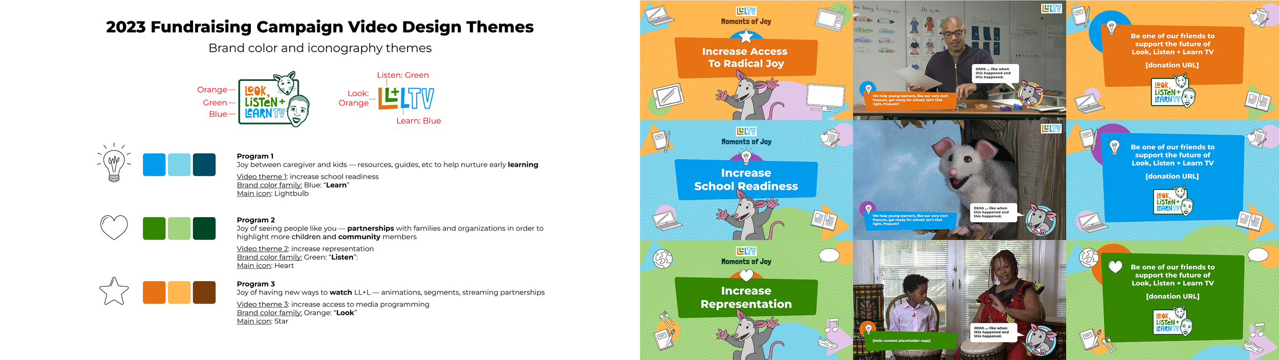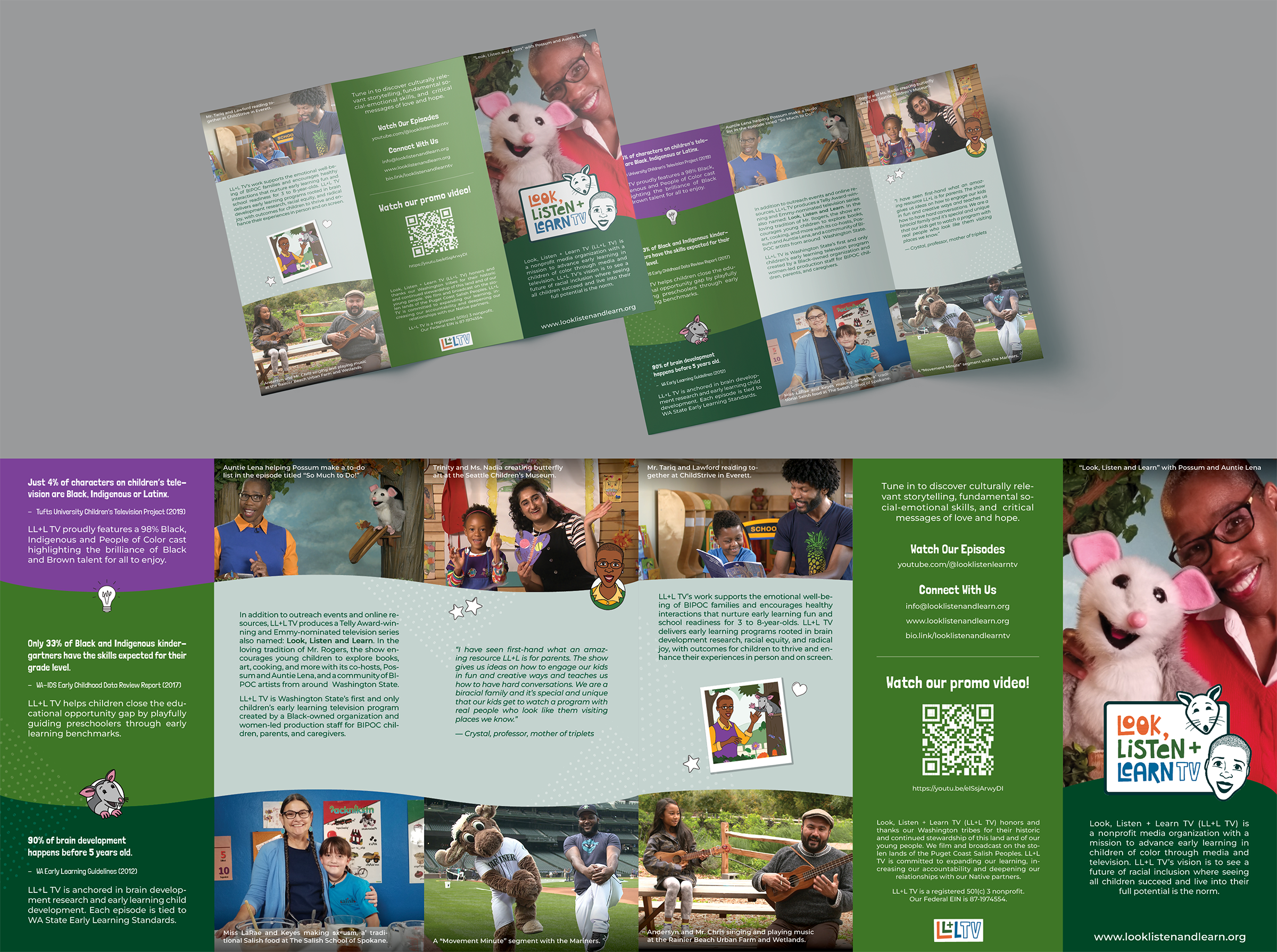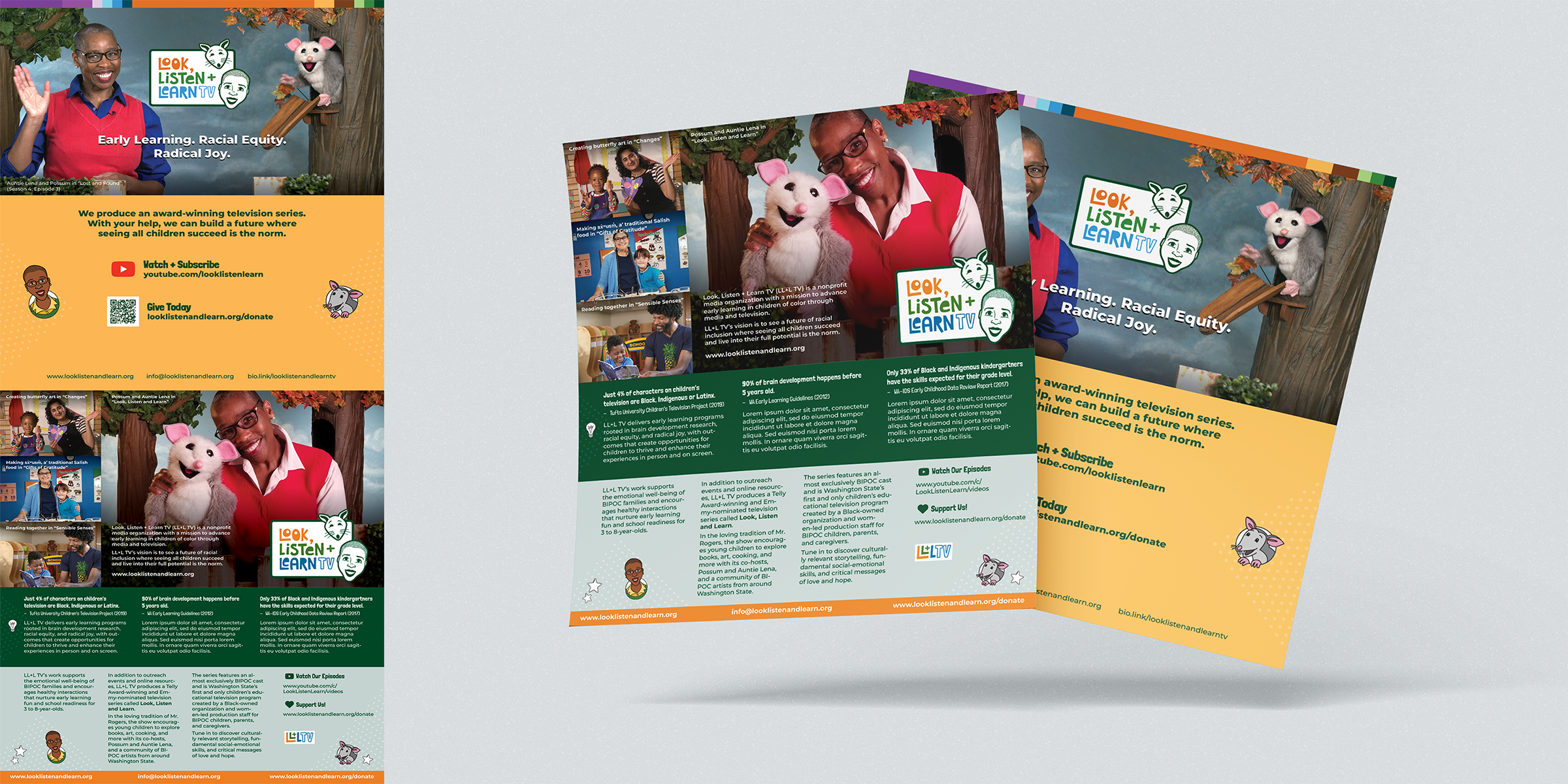I had the honor of first meeting Look, Listen + Learn TV’s founder and Executive Producer Val Thomas-Matson back in the early 00’s as she nurtured her vision to create a children’s television program to improve media representation and support early childhood development. My first project with LL+L TV back then was to create an opening sequence for its pilot episode. Our paths crossed once again, and I was fortunate to partner once again with Val and her team as LL+L TV became a 501(c)3 non-profit organization to broaden its outreach while continuing to create award-winning children’s tv show starring herself as Auntie Lena with her pal, the puppet character Possum.