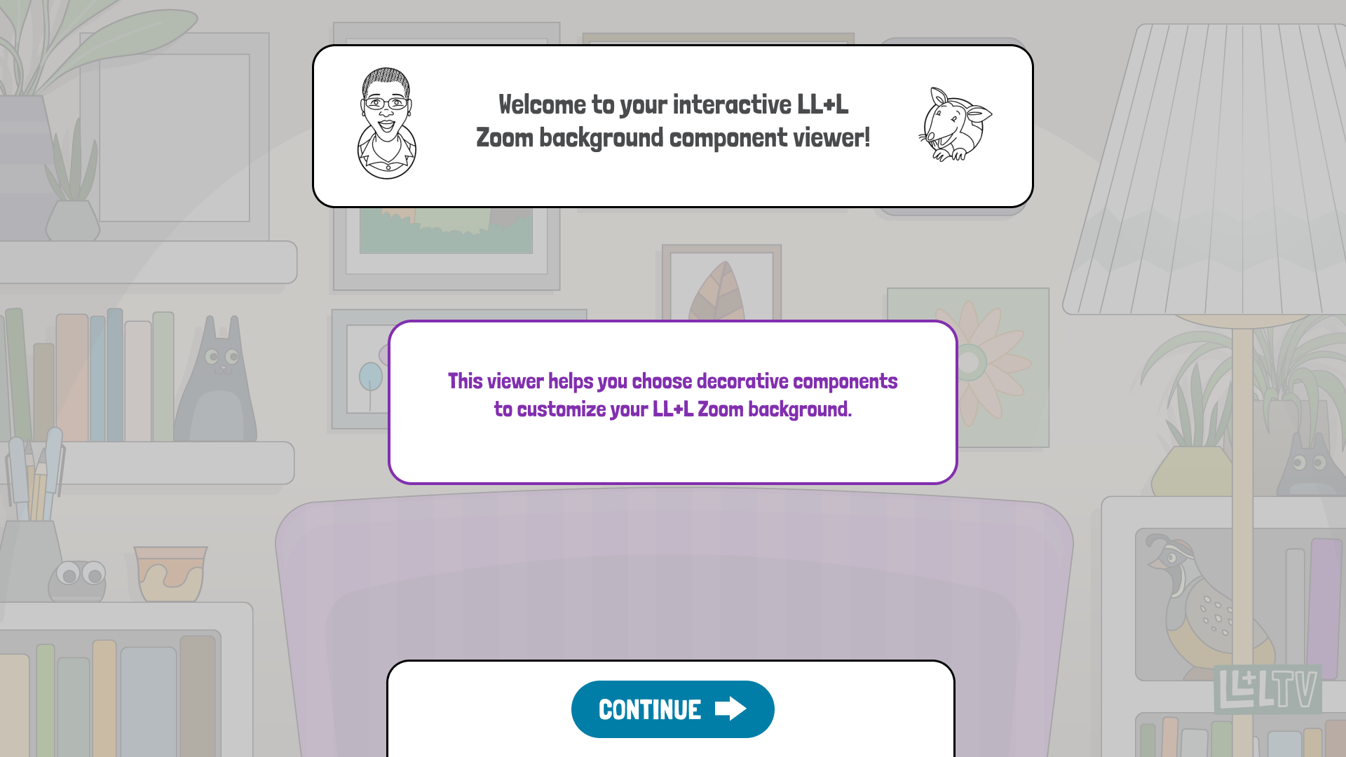 To provide customized zoom backgrounds for Look, Listen + Learn TV's core team and board members, our Communications Manager suggested creating background assets that people could choose for their final zoom background. While creating the illustrations, I also took the initiative to create an interactive Figma prototype to allow staff members to choose design elements for their own customized Zoom background. I could then easily incorporate their background preferences by just swapping out the components, adding in their personal item, and exporting the PNG for use. This efficient workflow saved hours of work and supported scaling production.